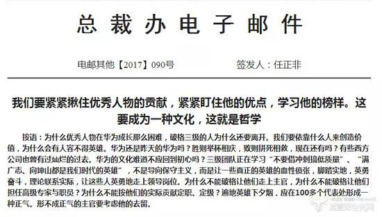 据运营商世界网报道,9月6日,作为华为领头人的任正非对其曾经的一名员工点名道姓的呼唤其回归,并且印发成文件分发至全体员工。邮件第二部分转发的是华为内部论坛名为《寻找加西亚》的帖子,主要内容十分动情:“加西亚,你回来吧!孔令贤,我们期待你!2014年孔令贤被破格提拔3级后,你有了令人窒息的压力,带着诚意离开了华为。周公恐惧流言日,更何况我们不是周公。是公司错了,不是你的问题。回来吧,我们的英雄。”前日,任正非公开对一名敢于说真话的员工连升两级还叮咛专人保护。