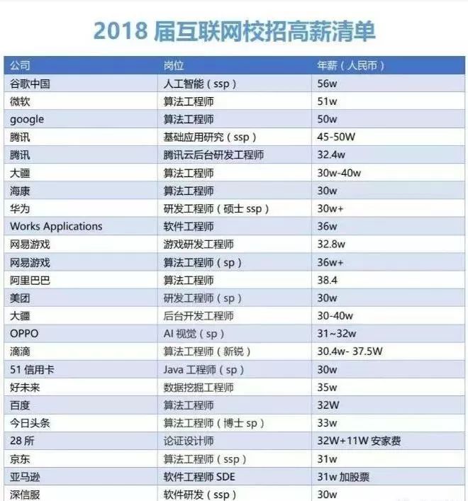 这张高薪表告诉我们:想进入大公司拿高薪,一定把握机会,跟紧技术潮流与方向。