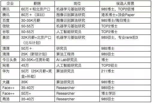 从拿到其中一些企业offer同学的反馈看,这份清单显示的年薪水平还是比较准确的。今年互联网企业中研究深度学习、机器学习、人工智能等岗位比较火热,在他们看来,校招年薪30万人民币只是起步价。