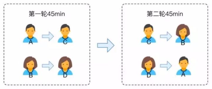 模拟面试的形式以 4 人为例(见下图),每次开展两轮面试,每个人分别做一次面试官和一次面试者。写代码方式可选纸笔,白板,在线编辑(google doc 或者 http://collabedit.com/),推荐刚开始和面试官交流时用纸笔,实际写代码在电脑 doc 上写(速度快,方便更改)。去年面试时,HR 会给面试双方发个共享 doc 链接,面试时在上面写 code。
