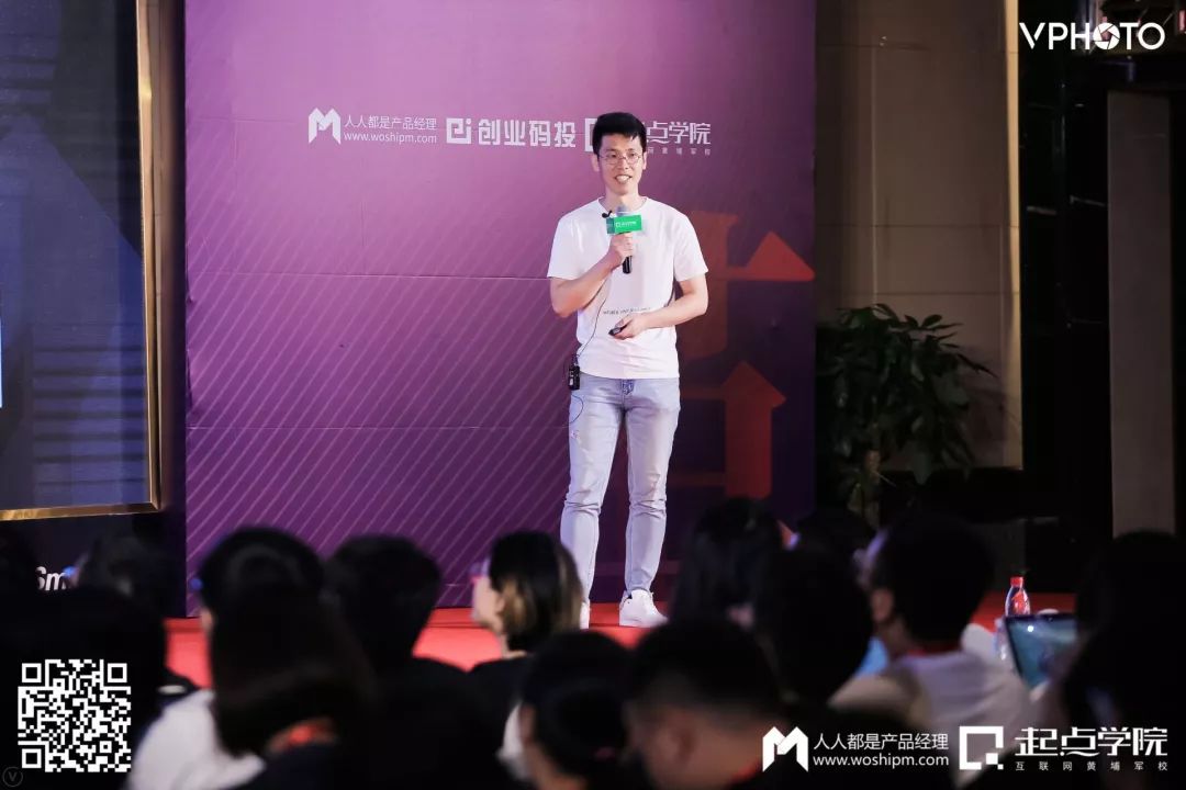 第一位分享的嘉宾,是前哒哒英语产品副总裁胡怀文老师,他给我们分享的主题是《产品经理的思维突破——破茧成蝶》: