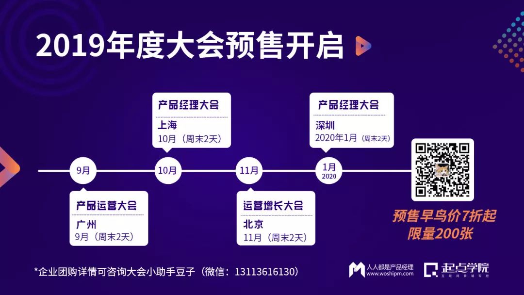 广州、上海、北京、深圳4地的年度大会预售已开启,预售价7折起,扫码添加小助手咨询详情: