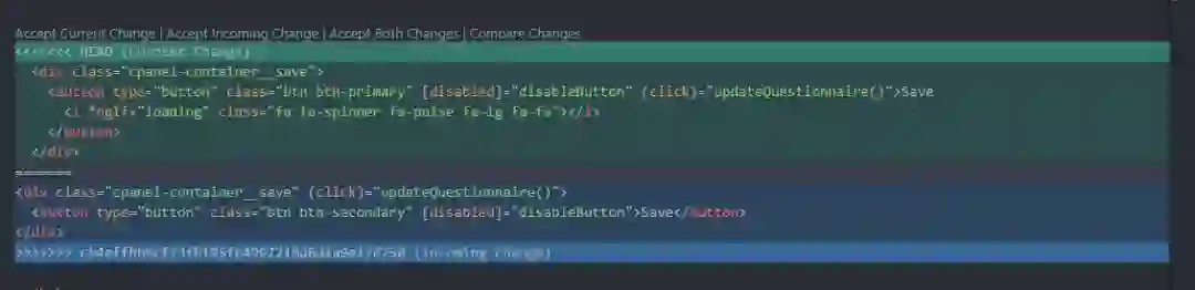 合理处理冲突合并的能力,是 VS Code 的一大优势。借助 VS Code 自动提供的冲突解决方案,我可以通过点击按钮来选择使用当前更改还是选择使用传入的更改。这种解决合并冲突的方式,为我节约了很多时间。