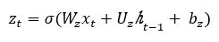 如图5所示,更新门的输出分别和历史状态以及候选状态