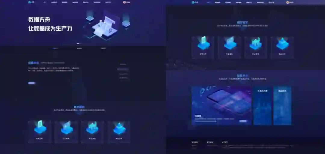 以近期工作中的数据方舟项目的首页改版为例:方舟作为各业务线决策中心的统一分发入口,提供了集团顶层数据知识及应用;并且横向接入数据工具、集团智库、数据应用功能,纵向挖掘数据价值、搭建看板平台。为了能够更好的强化品牌认知,打造更加智能的体验,我们进行了这次的品牌升级。