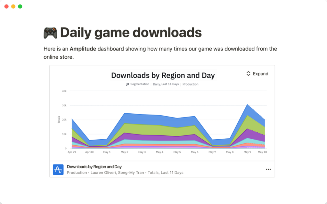 比如你可以在会议记录中直接通过链接预览的方式查看 Pitch 平台上的交易数据、在产品评论中直接显示来自 Amplitude 的最新图表、在文档中展示包含 GRID 的交互式图表和计算器等等,你也可以直接通过模板的形式来套用这些平台工具,帮助你将这些服务整合到 Notion 中。