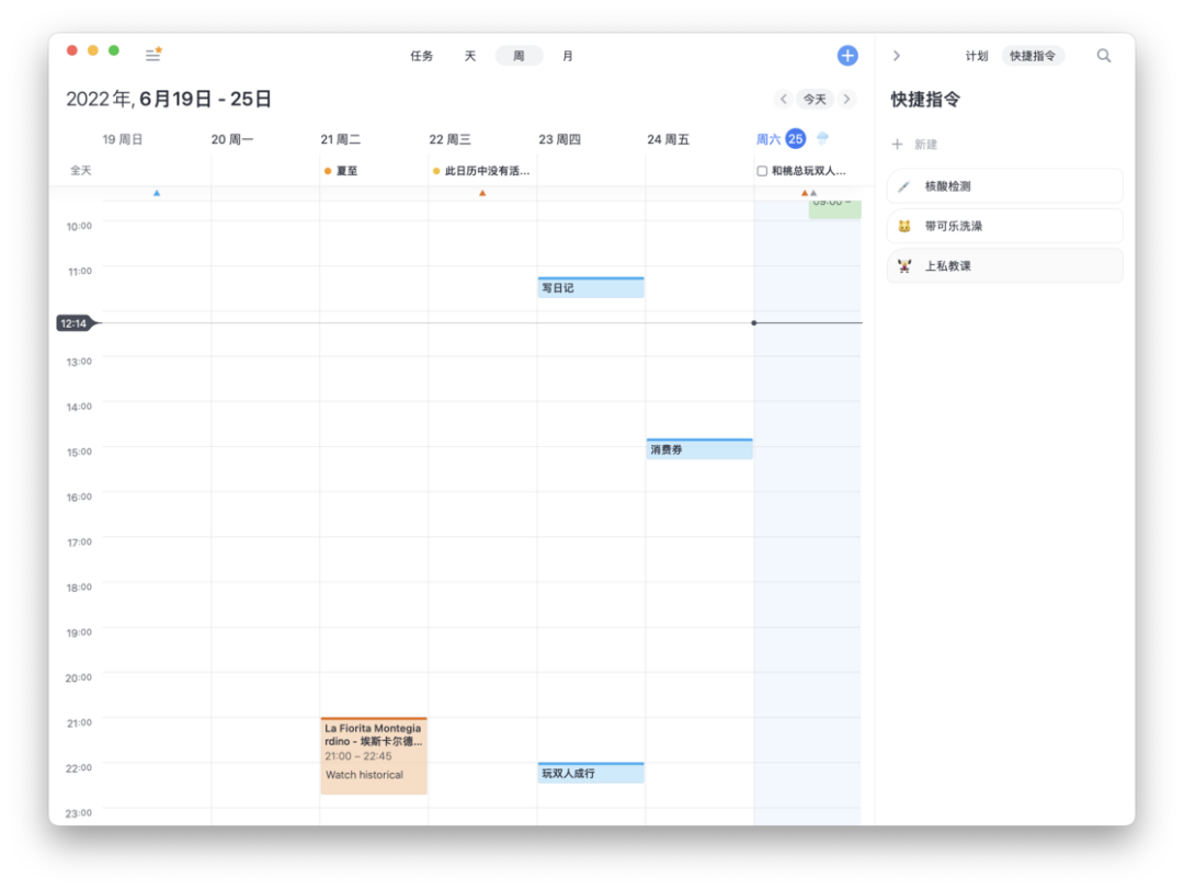 我最喜欢用捷径功能来快速创建一些日常习惯的事件,比如说健身、送猫咪洗澡、做核酸检测等。我确定这些事情需要在每周或者每月按照固定的频次去完成,但是无法提前确定具体的时间,只能根据当天的其它日程安排或者关联人的档期等因素来临时决定。