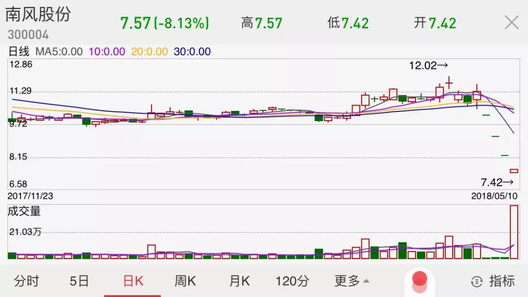 有了风口概念傍身的南风股份,股价也开始一路上涨。2015年6月3日,南风股份当日股价达到了107.98元/股(不复权)的最高点。