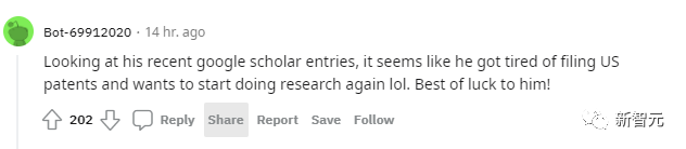 Reddit网友评论说,「他可能不想再给苹果造专利了,还是做研究香啊」。