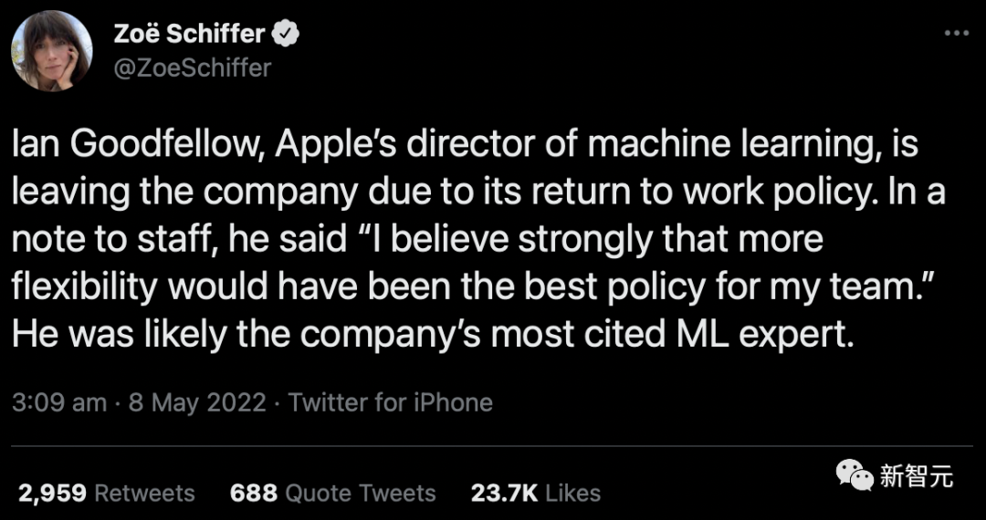其实早在今年5月,Ian Goodfellow就被爆出从苹果离职。