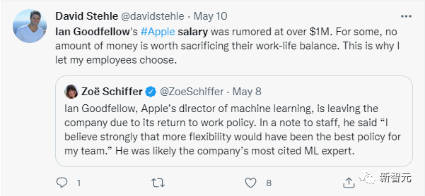 另外,有传言称Goodfellow在苹果期间的工资保守估计也至少是一百万美元,而DeepMind给出的待遇只会更高。