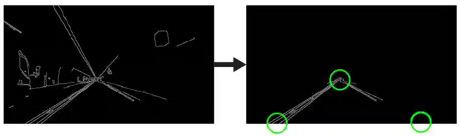由于我们传入 Canny 检测器的帧可能会被简单地看成表示我们图像空间中边的一系列白点,因此我们可以用相同的技术来识别哪些点应该被连成同一条线,以及这些点连接之后的线的方程是什么,以便我们可以在帧中绘制出这条线。