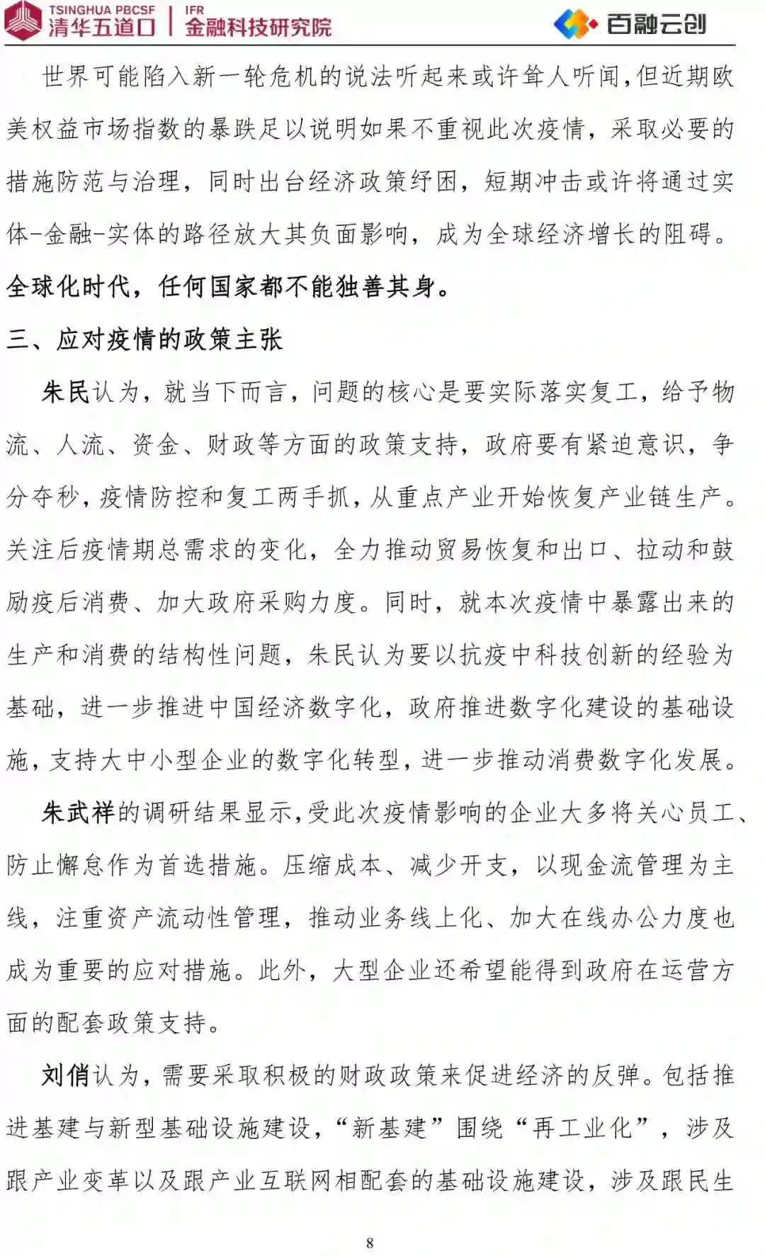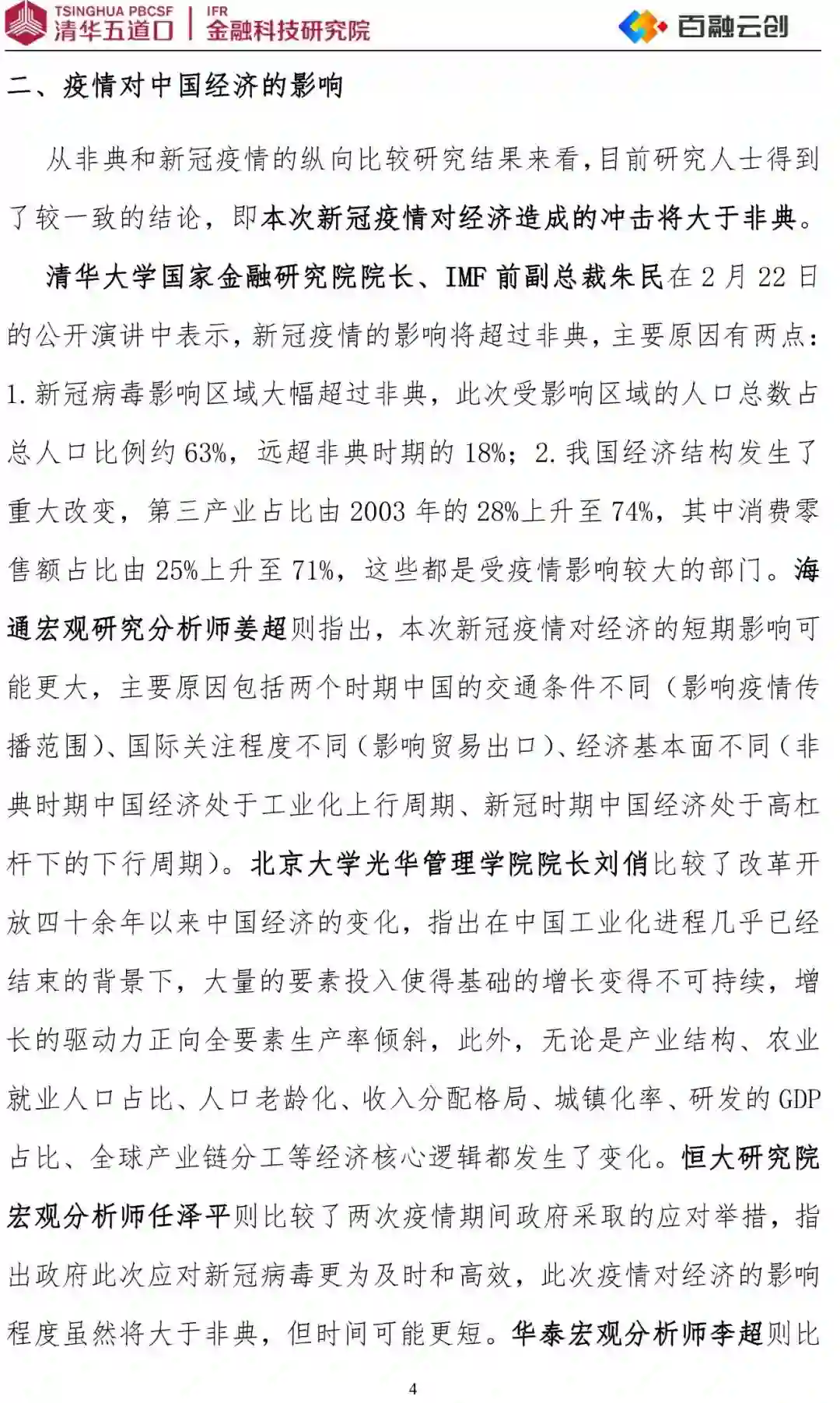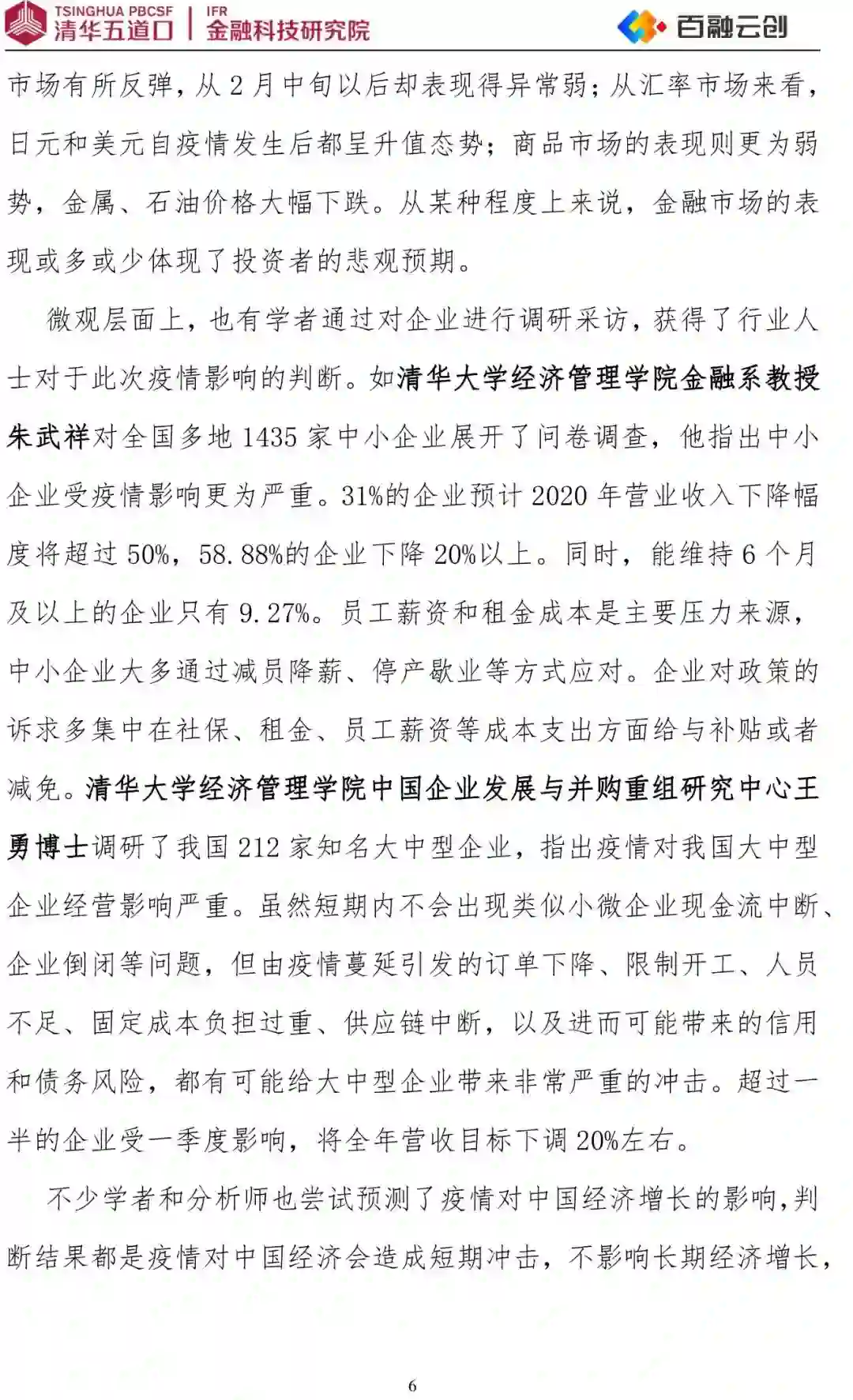 导读:2020年1月以来全国新冠疫情大爆发,严重冲击了我国经济发展,疫情下我国经济和保险业的未来走向成为被广泛关注的重点议题。本文由中国科技产业化促进会常务理事、清数大数据产业联盟副理事长、清华校友总会AI大数据专委会副会长单位百融云创携手清华大学金融科技研究院金融大数据研究中心发布研究报告《疫情下的中国经济》,汇总了高校、智库专家学者、行业宏观分析师的研究观点,旨在探讨新冠疫情对企业的影响及其应对措施。