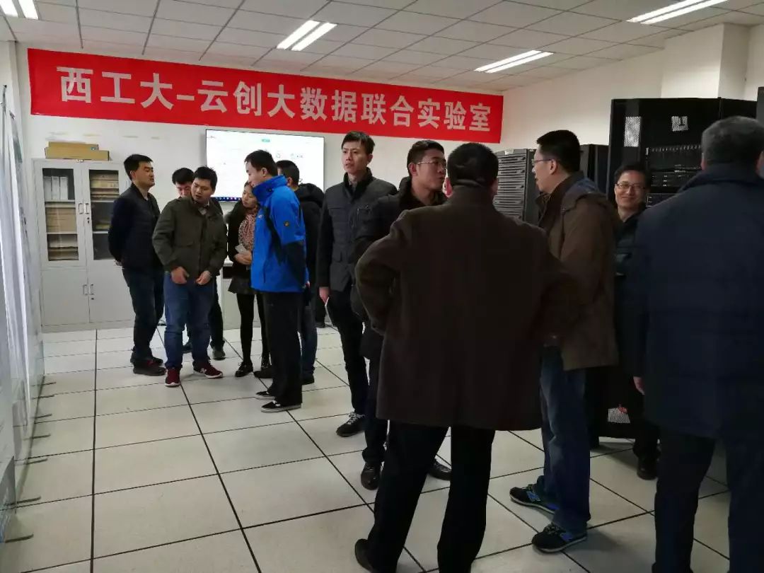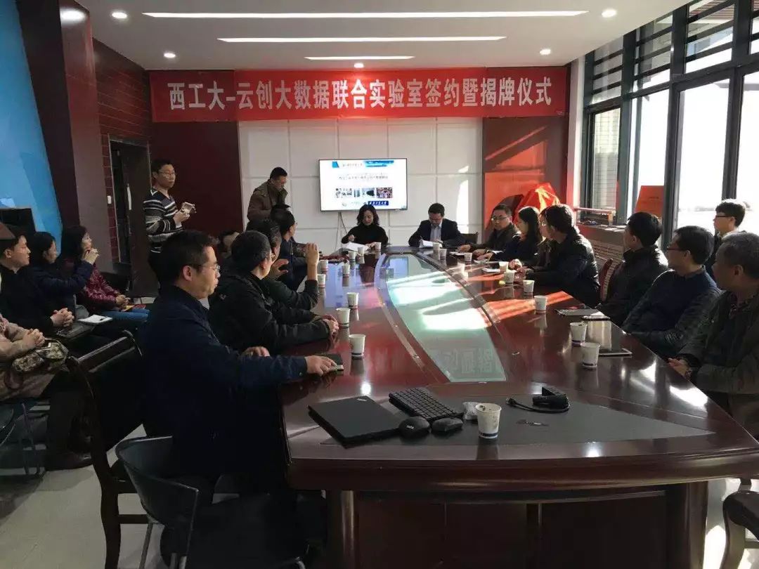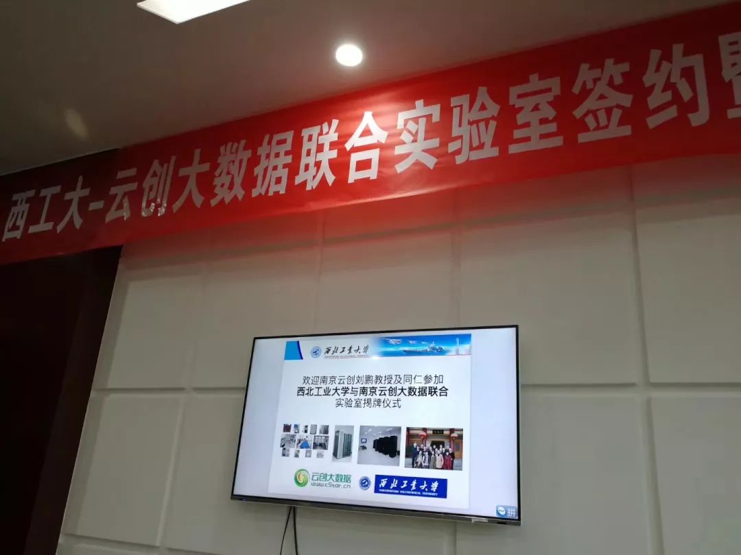 2017年12月19日,西工大-云创大数据联合实验室签约仪式暨揭牌仪式在西北工业大学长安校区计算机学院隆重举行。西北工业大学工业和信息化部大数据存储与管理重点实验室主任李战怀教授、教务处实践教学办公室主任范乃强、计算机学院软件系副系主任张晓副教授、计算机学院博导陈群教授、大数据联合实验室主任潘巍副教授等共同出席了签约仪式,西北工业大学计算机学院副院长尚学群教授与云创大数据总裁刘鹏教授代表双方签约大数据联合实验室,并共同为实验室揭牌。