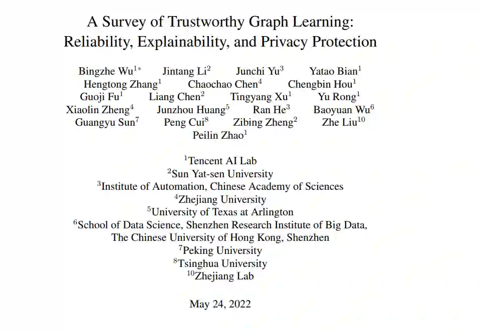 【导读】图学习是当前研究的焦点。深度图学习在商业和科学领域都取得了显著的进展,从金融和电子商务,到药物和先进材料的发现。尽管取得了这些进展,但如何确保各种深度图学习算法以对社会负责的方式运行并满足监管要求成为一个新兴问题。腾讯等10家机构20位作者《可信赖图学习》综述论文,54页pdf全面阐述图学习可靠性、可解释性与隐私保护,非常值得关注!