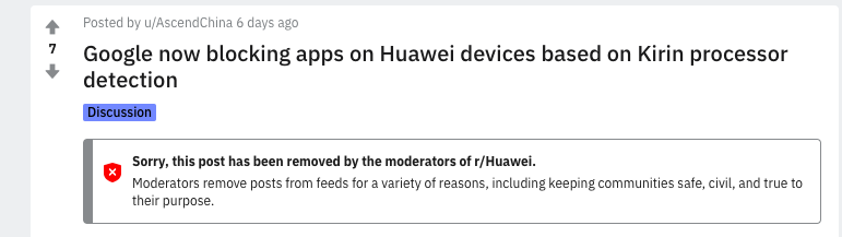 最近,Reddit上有网友发帖称,装有麒麟芯片的华为手机无法安装谷歌应用,还给出了测试截图,并认为谷歌在封杀麒麟。