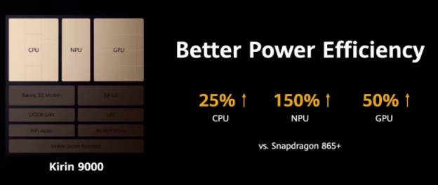 麒麟9000集成了153亿个晶体管,使用了8核 CPU、24核的G78 GPU、2个大核 + 1个小核的 NPU,并集成了华为最先进的 ISP 技术。GPU总体性能提升50%,NPU性能提升了150%。