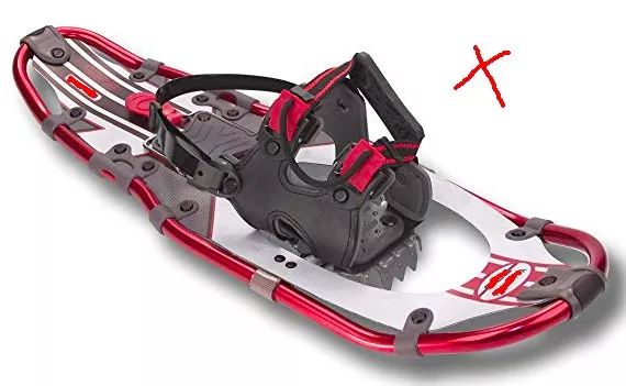 雪鞋 带齿边框比铝管边框要更防滑。下面的这种铝管边框的,在陡峭雪坡上防滑性不好,曾经有人付出生命代价。除非买不到上面这种,能够避免就避免: