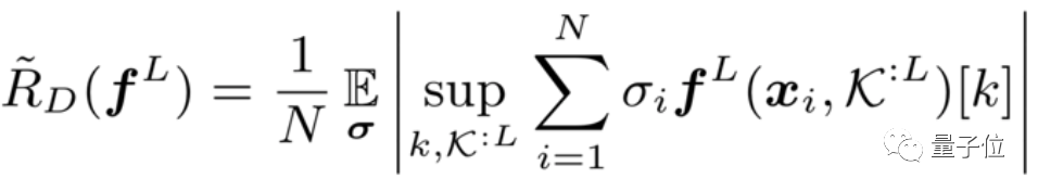 定义1:给定由分布Q成的𝑁个实例D= {(x𝑖,y𝑖)}的给定训练数据集,网络𝑓𝐿的经验Rademacher复杂度定义为: