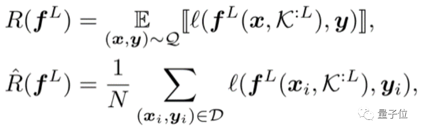 以图像分类任务为例,总体期望风险R(fL)和训练集上的经验风险是: