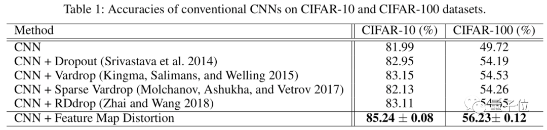 全连接层实验中,华为所提出的特征图扰动方法,训练CNN达到85.24%的准确度,相比于最新的RDdrop方法,测试准确率分别在CIFAR-10和CIFAR-100数据集上提高了2.13%和1.58%。