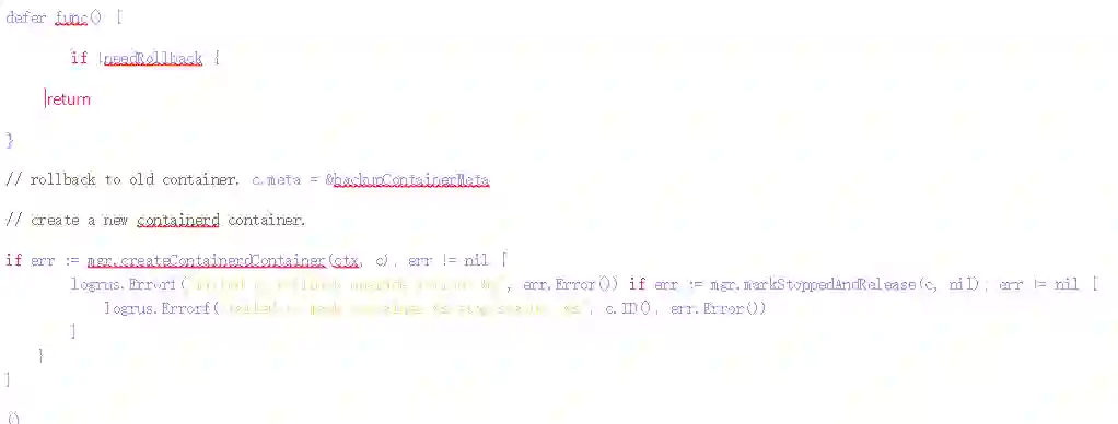 启动新容器出现系统错误时,需要执行回滚操作:即在调用 containerd API 创建新的容器时如果失败则会执行回滚操作。如果 API 返回正常,但容器内的程序运行异常导致容器退出的情况,不会执行回滚操作。