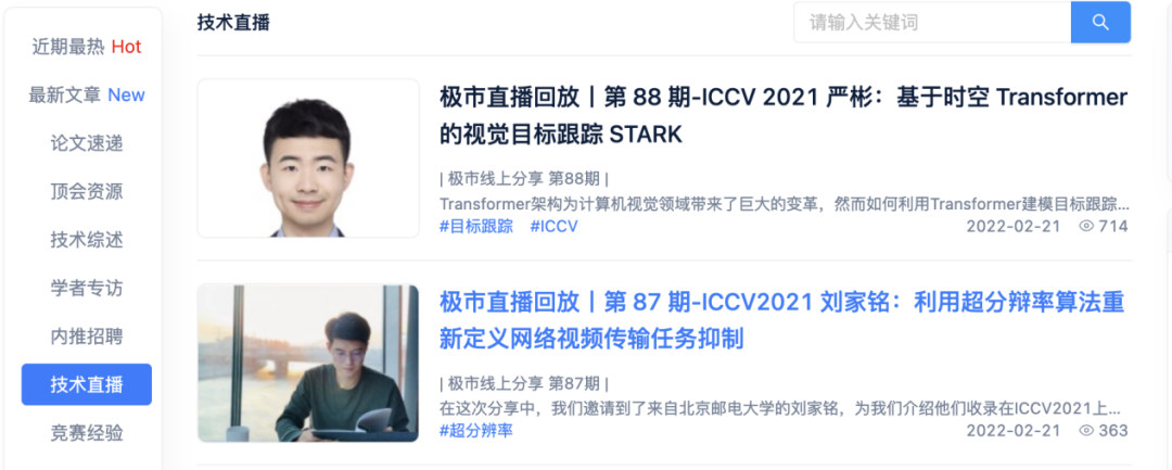 例如,点击“技术直播”类别,就可以看到自2017年以来全部的极市直播资料: