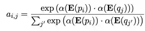 对于passage的encoding,除了利用Glove得到的word embedding之外,还加入了一些语言学的特征,如POS(part of speech)和NER(named entity recognition) tag以及term frequency。另外还加入了比较简单的特征如段落中单词是否出现在问题中的binary feature,对于这种match,又分为三种即exact match, uncased match(不区分大小写), lemma match(如drive和driving)。更进一步,还引入了aligned question embedding, 与exact match相比,这可以看做是对于相似却不完全相同的单词(如car与vehicle)的soft alignment: ,其中