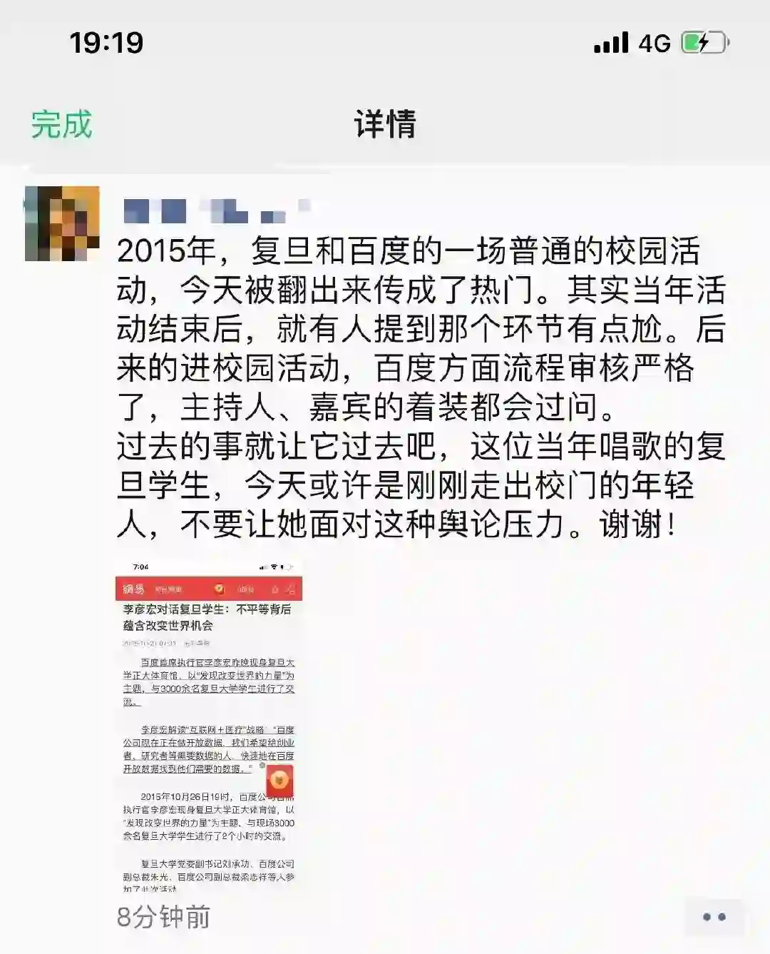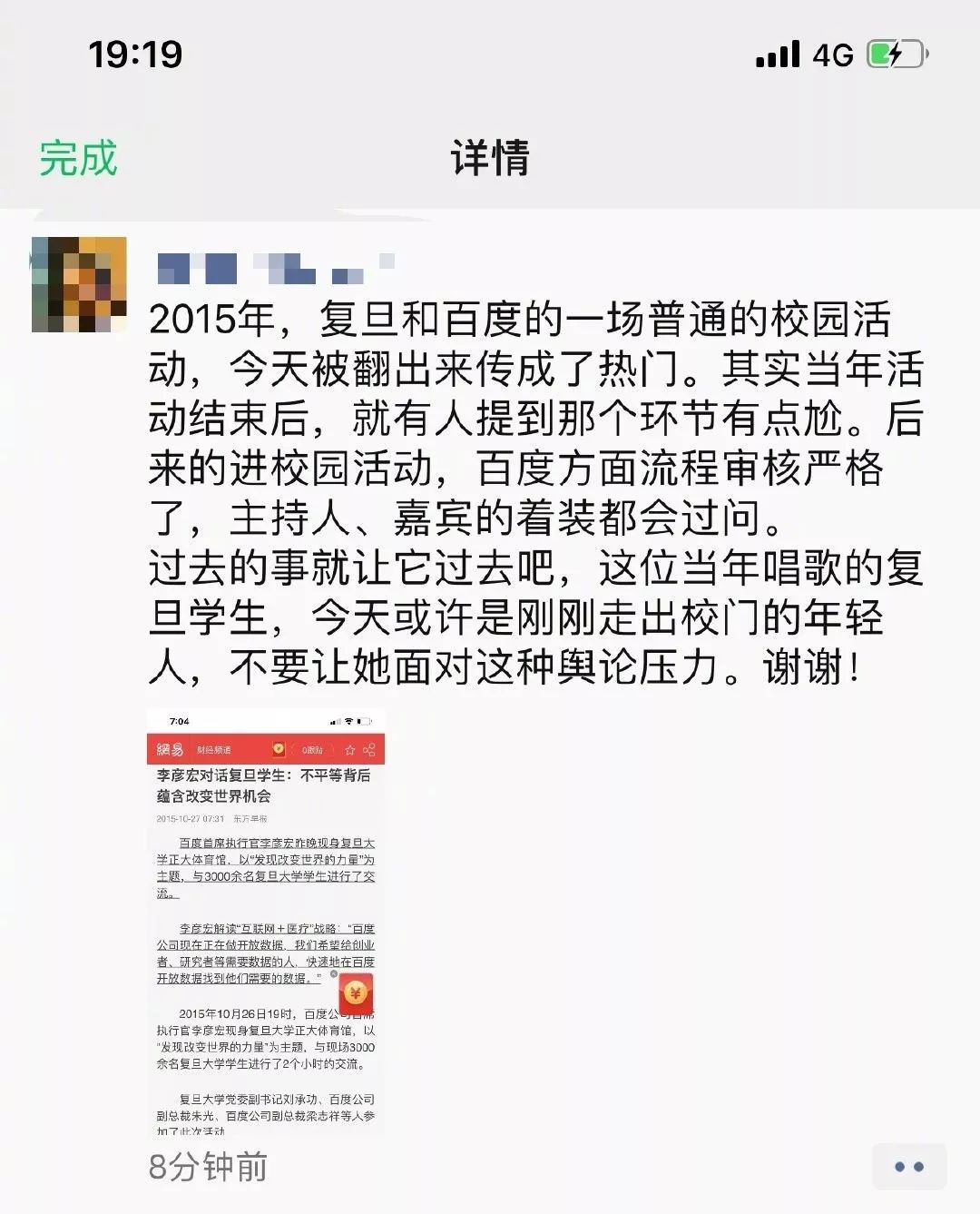 8.百度回复“复旦女生献歌李彦宏”:过去的事就让它过去吧