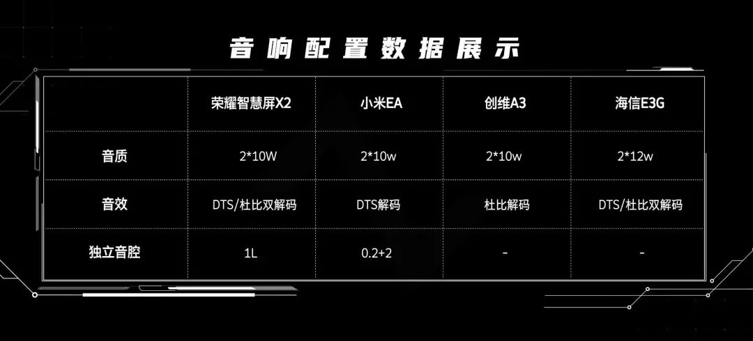 同样没有对比没有伤害的还有音响效果,音响配置和支持的解码我也在表格里列出来给大家,欢迎大家去观看视频中的实录对比,戴上耳机差异会更加明显。