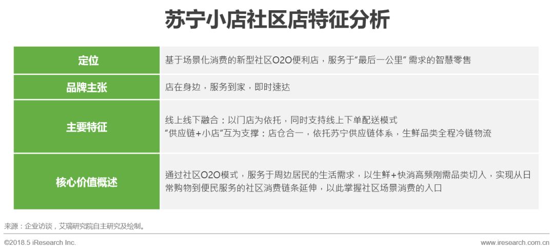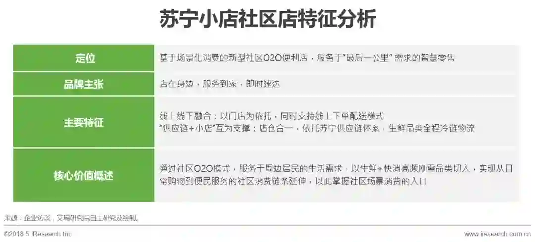 慧零售业态。从店面模型来看,苏宁小店主要围绕社区、CBD和大客流地段进行差异化构建。其中,社区店主要面向家庭用户,以生鲜和快消为主打品类;CBD店主要面向办公室白领,在选品结构方面主要满足的白领阶层对于工作就餐(轻餐饮)的需求;大客流店则会针对不同大客流场景配置各类商品。以下首先以社区店为例分析苏宁小店的模式创新与核心价值体现。