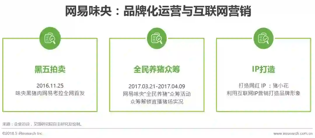 作为网易旗下品牌,味央在品牌运营与互联网营销方面也具备天然优势。通过“黑五拍卖”与“全民养猪众筹”等极具互联网化特征的营销活动,提升品牌知名度与形象;还通过打造拟人化IP形象,提升网易味央在年轻消费群体中的品牌认知,对于泛生鲜品牌IP化运营具备良好的借鉴意义。