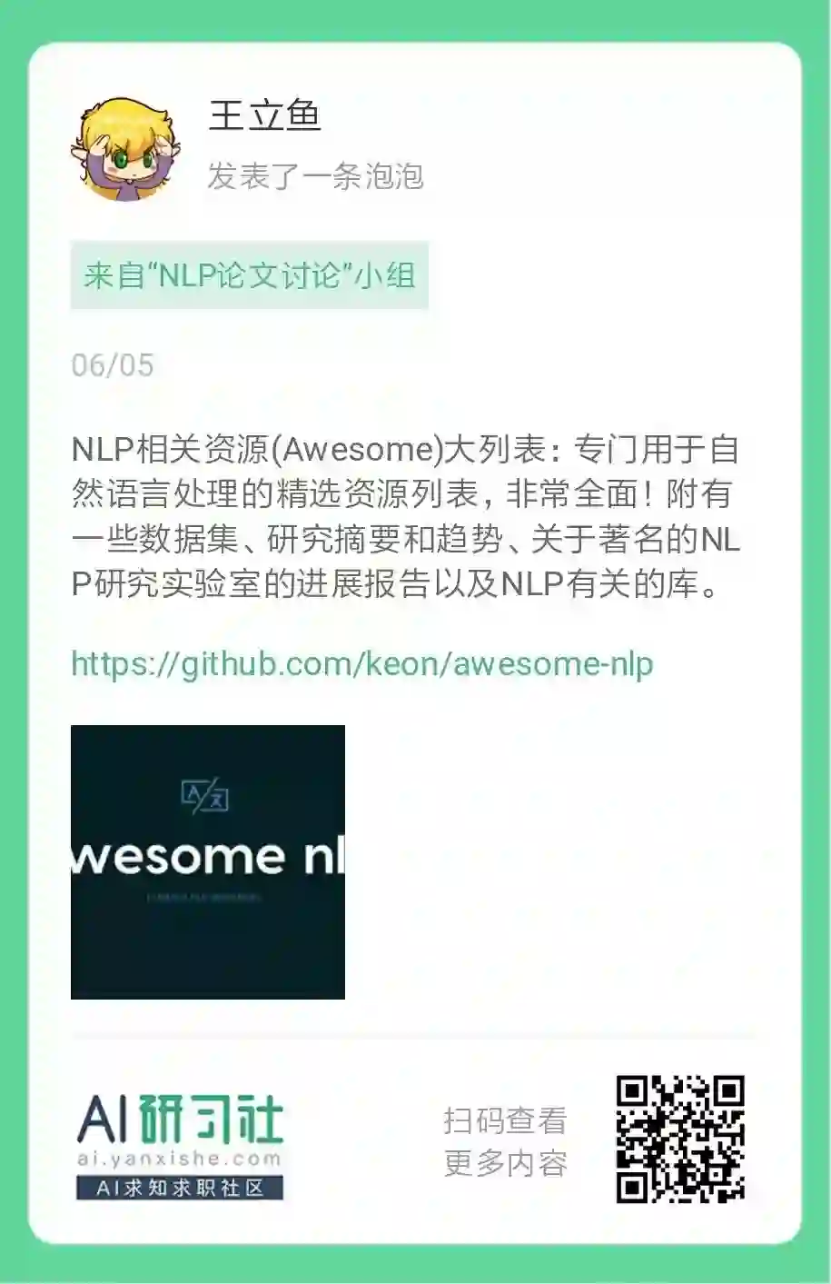 他是一个湾区的数据科学家,专注于领先的数据科学技术,人工智能,尤其是自然语言处理及平台相关的方向,通过以下方法可以联系上他:LinkedIn,Medium 以及 Github。