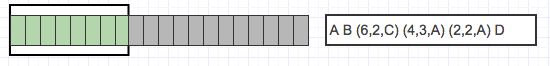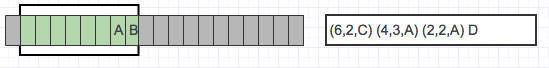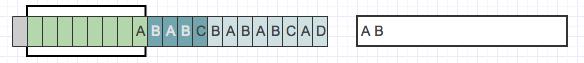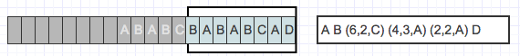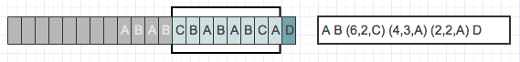 目前从前向缓冲区中可以和滑动窗口中可以匹配的最长短语就是(A,B),然后向前移动的时候再次遇到(A,B)的时候采用标记符代替。
