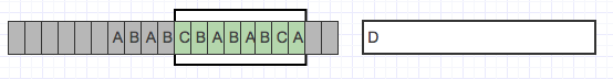 7、缓冲区字符D,在滑动窗口中没有找到匹配短语,标记为D