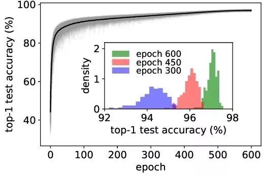 作者从 DARTS 的搜索空间里面随机采样了足够多的结构 (200+)进行训练,想看一下不同的结构之间的方差到底有多大。