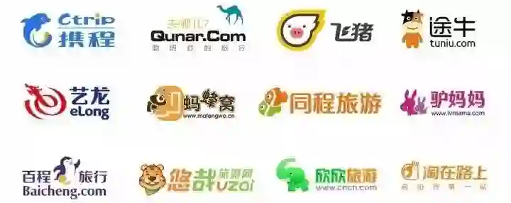有些特定门类或行业的互联网公司,动物形象的比例高得离谱,完全可以组成行业内的动物园。譬如排名前十的旅游网站中,就有 8 个商标或名字包含动物,在前十之后,你还会看到一大堆动物,几乎可以说是「无动物不旅游」。