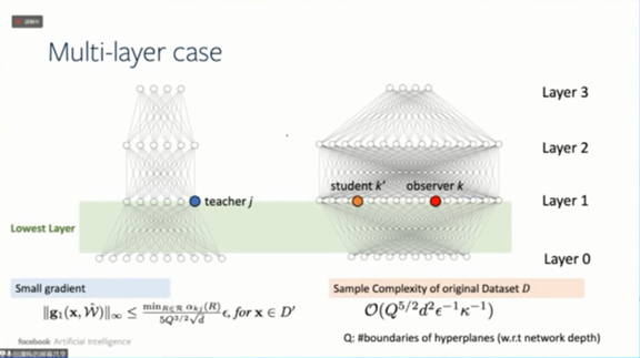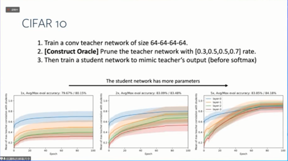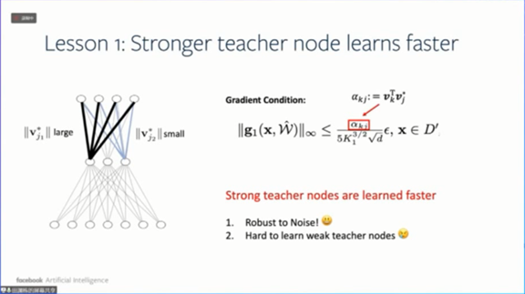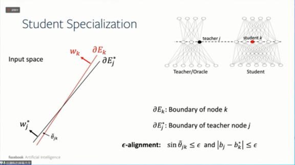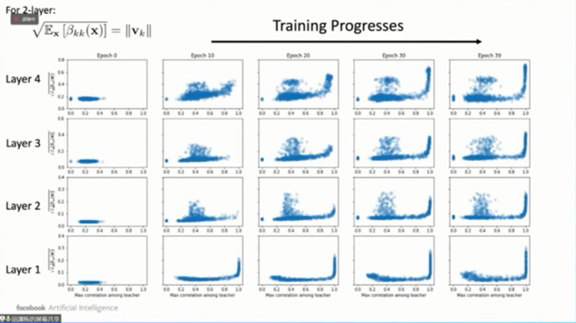 。假设总有教师神经网络能够完全拟合所有数据,然后用学生神经网络去学习教师神经网络,就可以拥有参考点,这个参考点可以用来做细致的优化分析。以前只能通过损失函数来学习,现在可以通过学生网络和教师网络之间的权重对应关系来进行。