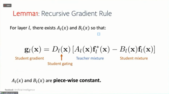 首先,我们能得到一个引理,即学生网络的梯度其实可以写成教师网络激活函数和学生网络激活函数的线性组合。