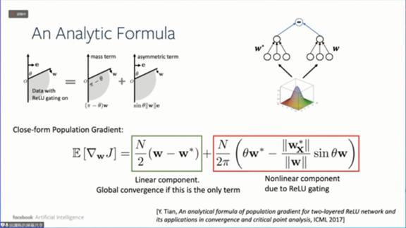 2020年7月31日至8月5日,VALSE 2020视觉与学习青年学者研讨会在线上举行。在主题为《机器学习前沿进展》的论坛中,田渊栋博士发表了题目为《深度ReLU网络中可证明的理论性质》的演讲。
