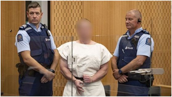 新西兰克赖斯特彻奇市恐袭枪手摆出“OK”手势。图源:BBC