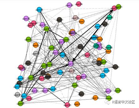 > V(g)$label.color <-"white" # 设置点标签颜色为白色