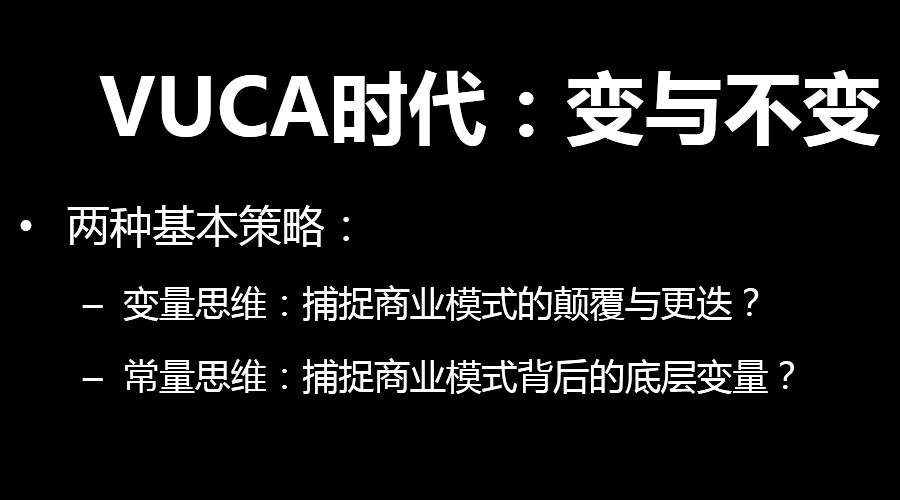 VUCA的时代给我们带来一个新的命题,怎么把握变与不变?两种基本的策略,变量思维捕捉变化。