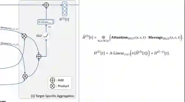 整个模型的框架可以分为三部分:Heterogeneous Mutual Attention,Heterogeneous Message Passing 和 Target-Specific Aggregation。分别用来计算attention,传递信息,信息聚合。