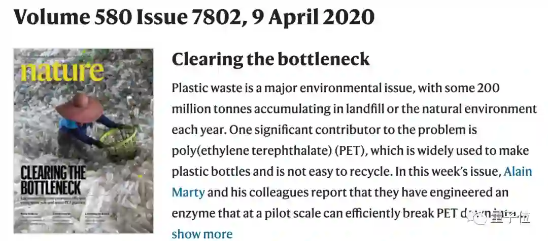 近日,来自法国图卢兹大学的团队就提出了一种新的酶:可以在10小内水解90%的塑料瓶PET。