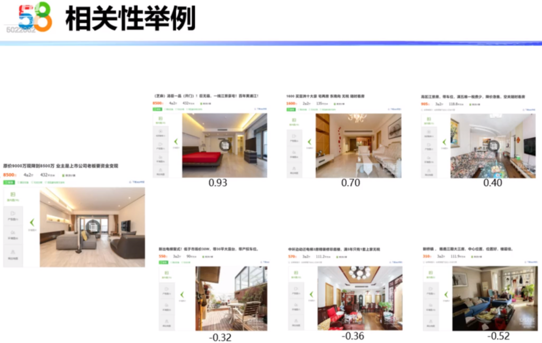 下图展示了相关性的举例。随着相似度的减小,房源的价格、面积和位置差异会越来越大。所以,我们得出的Embedding还是有一定的效果。