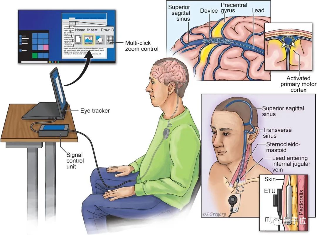 参与者通过眼球运动控制光标,这一过程是通过眼动跟踪器实现,并使用运动神经假体进行点击选择。