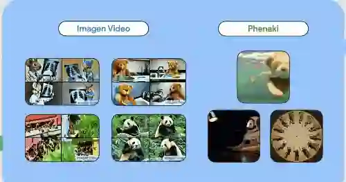 而 Phenaki 则是完全通过大语言模型,在时序上不断生成 token 的方式来生成视频。它的优势在于能够生成极长(数分钟)的视频,且画面的逻辑和视觉连贯性更强。