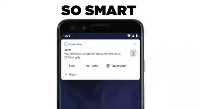 在Android 10中启用了回复通知的全新方式。由于邮件包含一个地址,它允许用户回复几个快速选项或只是用所述地址打开谷歌地图。