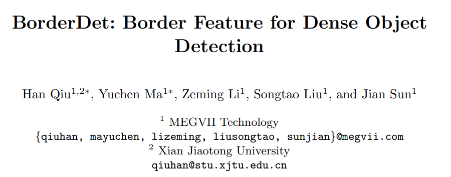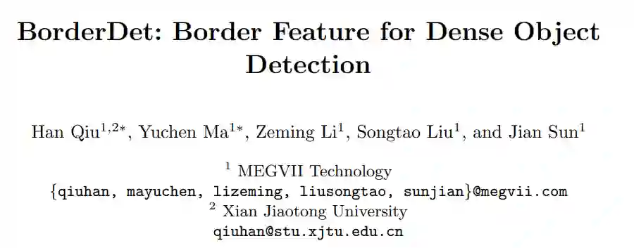 文解读的是ECCV 2020 论文《BorderDet: Border Feature for Dense Object Detection》,作者来自旷视、西安交通大学。本文首发于知乎:https://zhuanlan.zhihu.com/p/163044323。